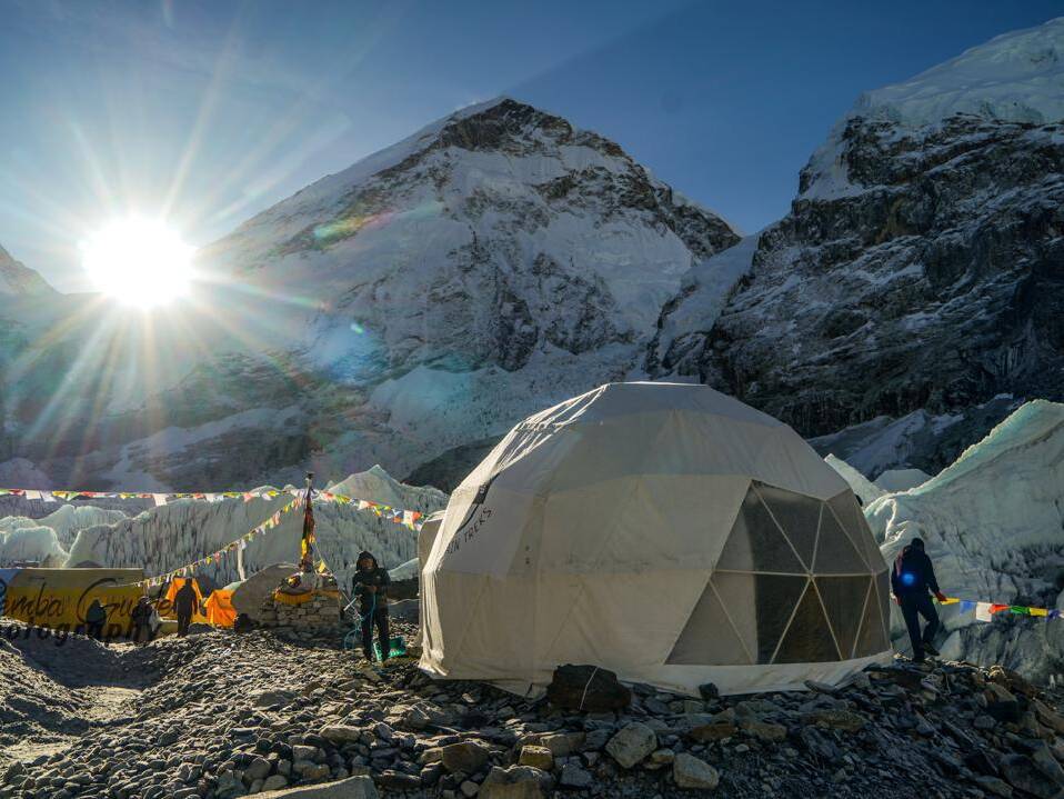 Everest Base Camp sits at 5,364 meters (17,598 feet).