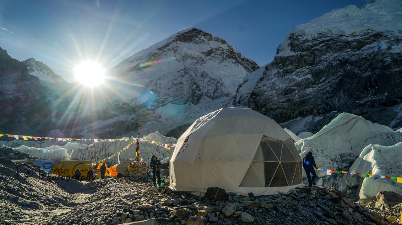 Everest Base Camp sits at 5,364 meters (17,598 feet).