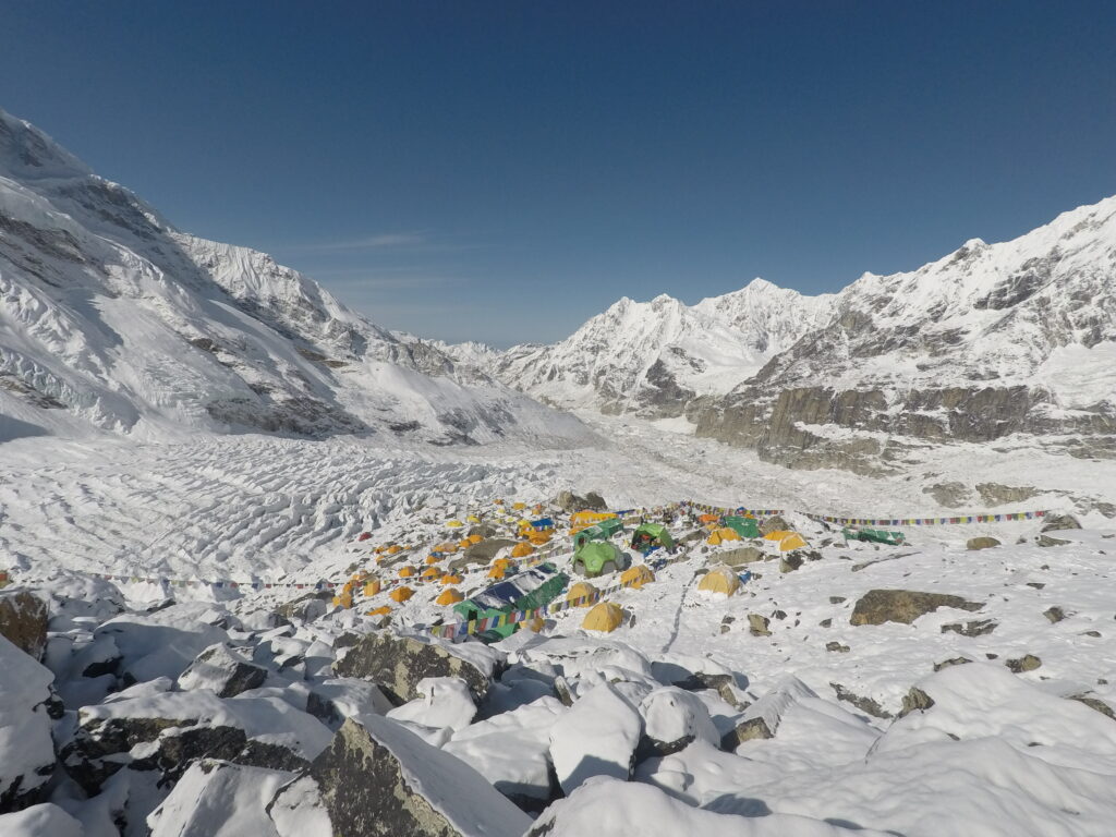After summiting Mera Peak, we will fly to Kanchenjunga’s base camp, which is located at 5,200 m (17,056 feet). This tranquil and isolated site, located against the spectacular background of the Kanchenjunga Range, serves as our base camp for our climb.