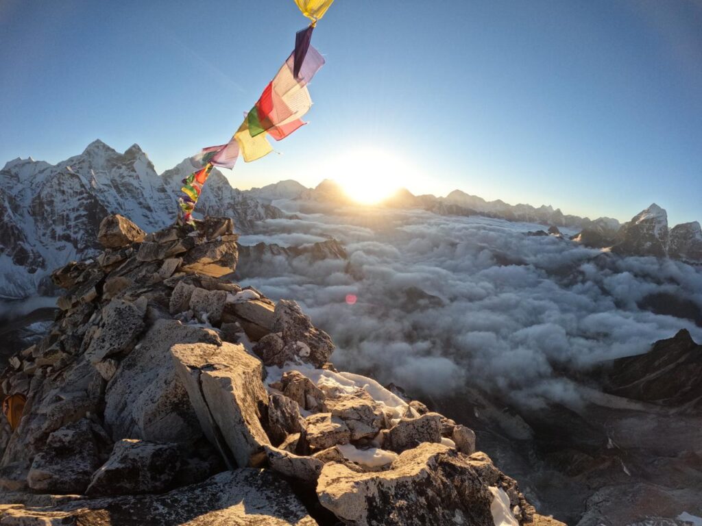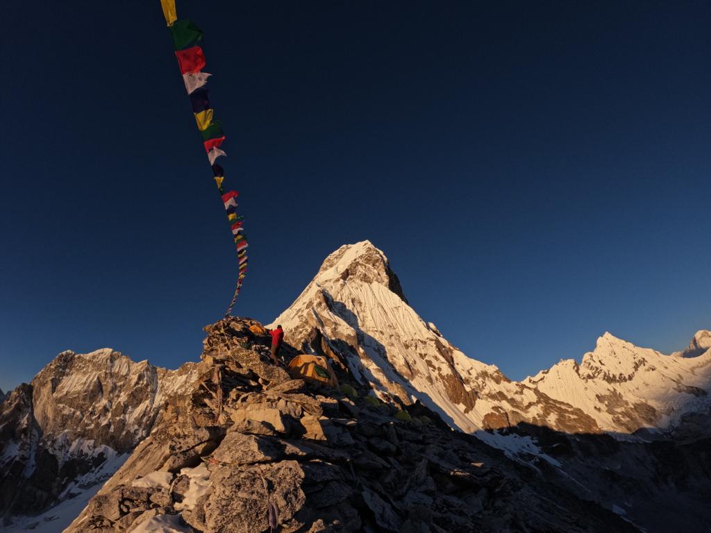 The views from the base camp, the climbing route and ultimately the summit are superb. The summit ridge offers a 360-degree panorama of the region including Ama Dablam, Pumori, and Everest. Certainly an unforgettable experience!