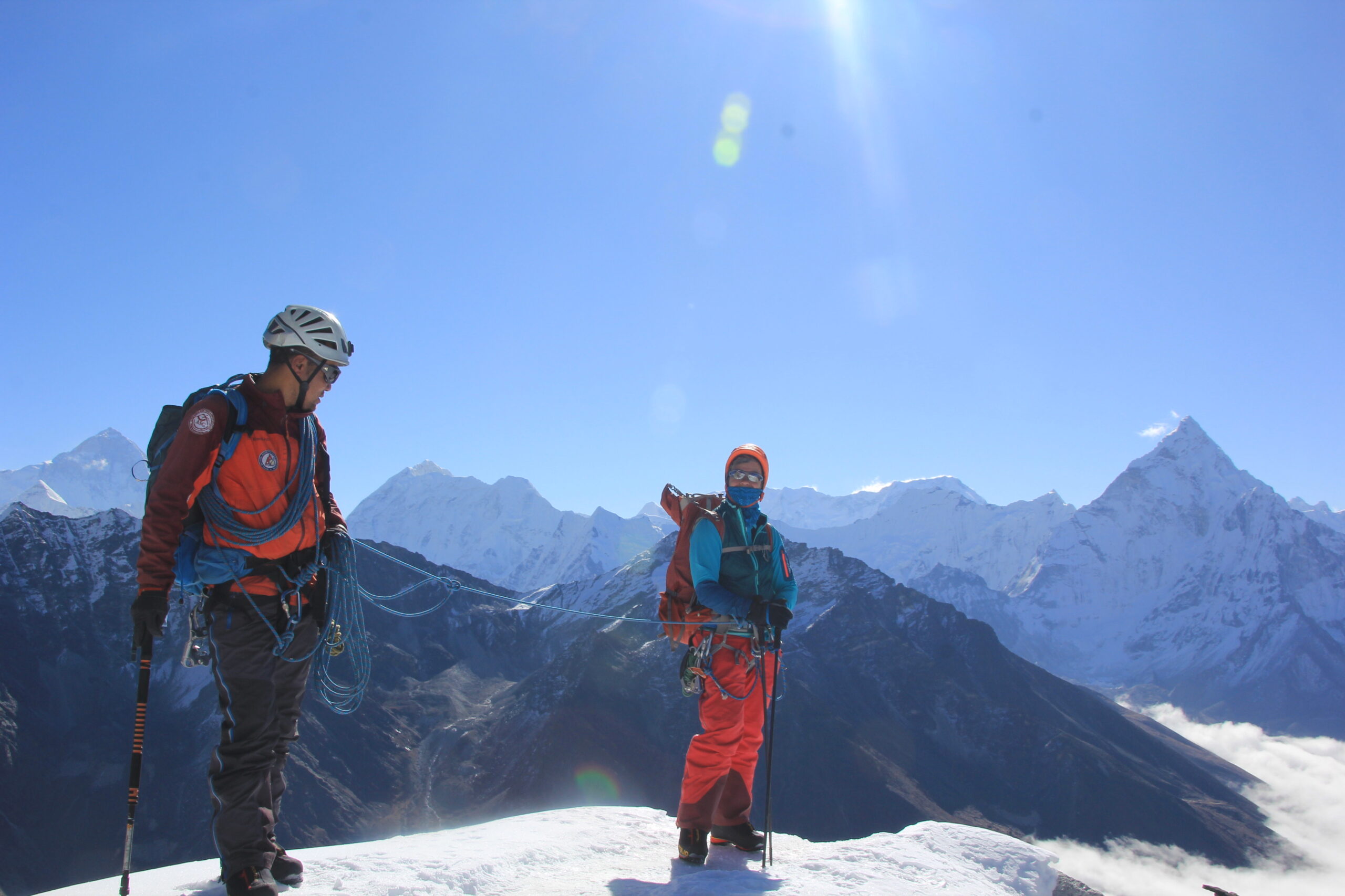 The views from the base camp, the climbing route and ultimately the summit are superb. The summit ridge offers a 360-degree panorama of the region including Ama Dablam, Pumori, and Everest. Certainly an unforgettable experience!