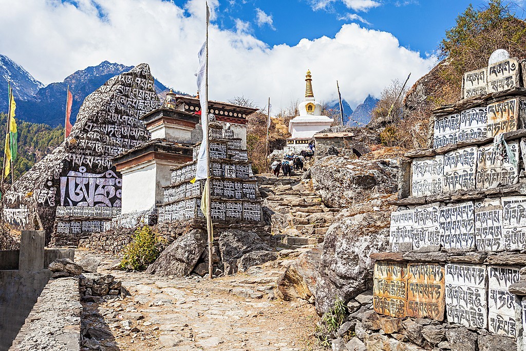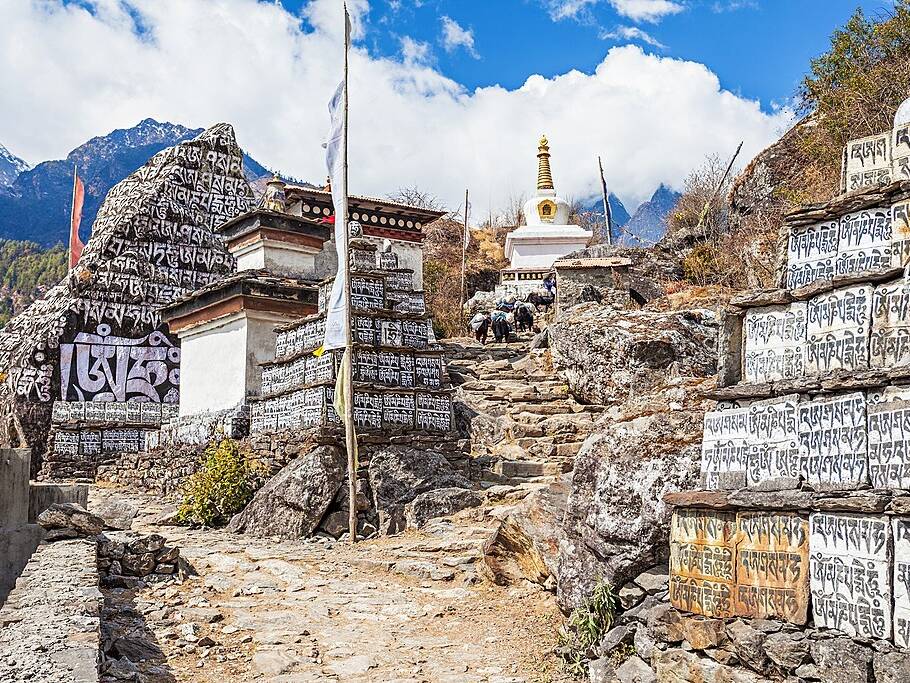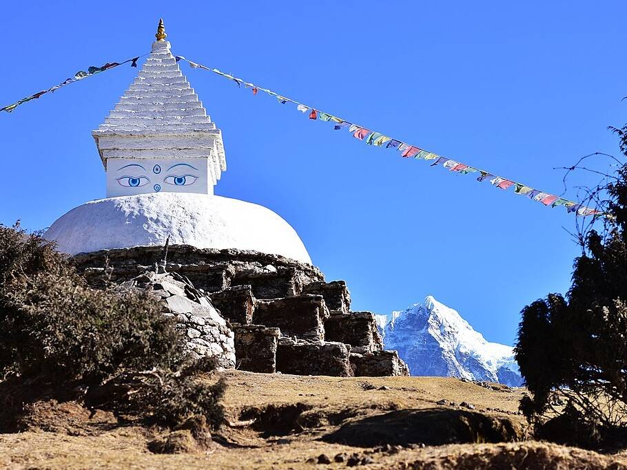 For those who want to explore, there’s an optional day hike that offers a glimpse into rich Sherpa culture. You can enjoy the sight of thousands of mani stones with Buddhist texts, as well as see Sherpa women clad in traditional clothes and ornaments. If you hike up to a little hill near Sama village, you’ll find an old gompa—Pungyen Gompa—a monastery with great views of the glacier.