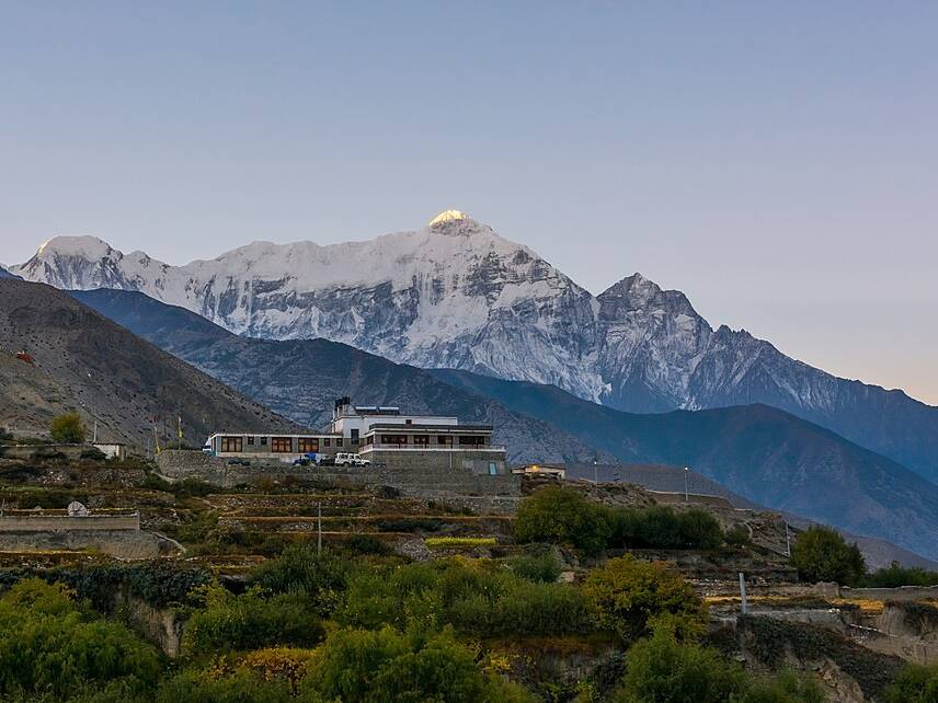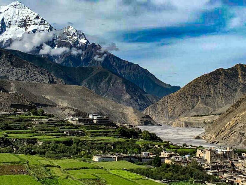 We’ll drive back to Jomsom today, retracing our path along the Kali Gandaki Valley, with stunning views of the Annapurna and Dhaulagiri ranges. Enjoy your final evening in the mountains at a comfortable lodge in Jomsom.
