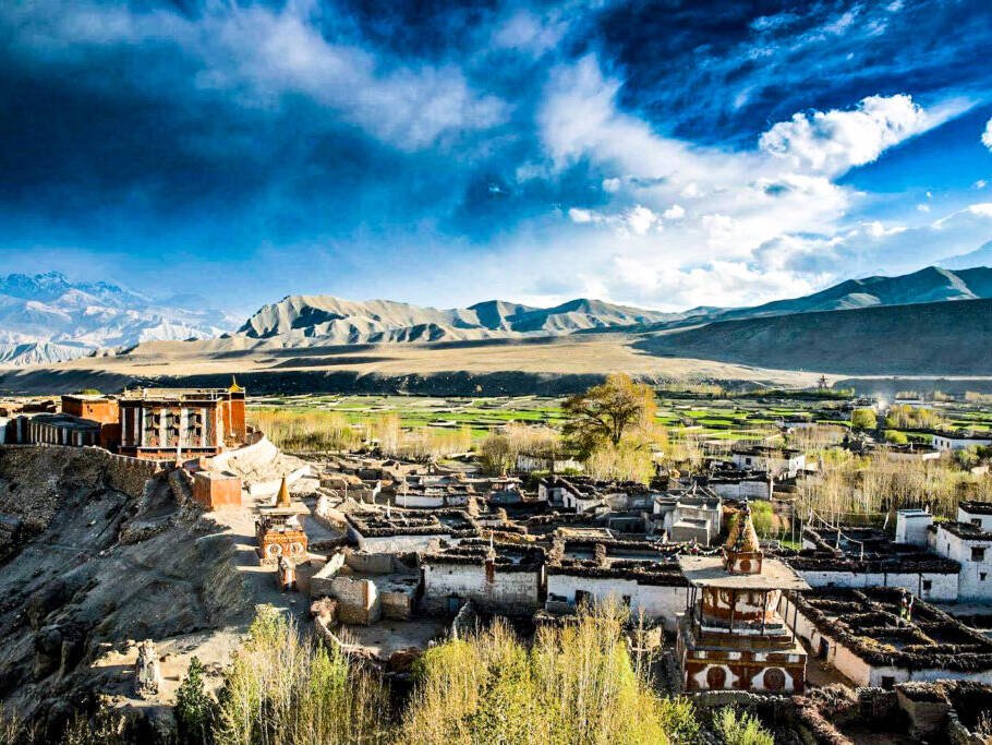 Today, embark on a scenic drive through the wide-open landscapes of Upper Mustang as we make our way to Charang. Surrounded by barley fields and traditional Tibetan houses, Charang is a culturally rich village known for its ancient monastery. Overnight in a comfortable, well-equipped lodge. Charang village, the second-largest settlement in Mustang, is home to about 750 people and 135 houses. The locals practice Tibetan Buddhism and Bon Po, with a culture and lifestyle closely resembling that of Tibet. Visitors are drawn to its Buddhist chortens, mani walls, monasteries, palace, traditional flat-roofed houses, and narrow stone alleyways. The village’s main highlight is the 14th-century Red Gompa monastery, famous for its inner walls adorned with frescoes, mandalas, and statues depicting the life of Buddha. Another must-see is the 16th-century Tsarang Palace, an architectural gem featuring intricate wooden carvings and colorful murals, showcasing the traditional Tibetan style.